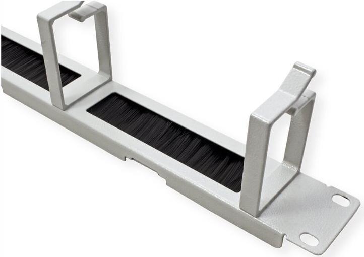 ROLINE 19 Zoll Rangierpanel 1 HE mit Bürstenleiste 44x60mm grauDie Kabelrangierpanel werden an den 19"-Profilschienen montiert. Mit vier Kabelführungsbügeln und drei Kabeldurchlässen mit Bürsten ermöglichen sie eine einfache horizontale Führung von Patchkabeln. Dies gewährleistet ein optimales Kabelmanagement in Ihrem 19"-Netzwerk- oder Serverschrank.