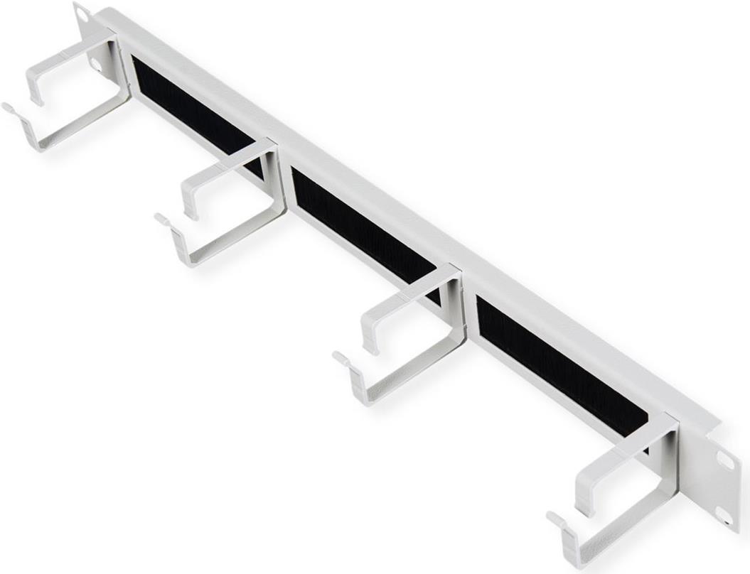 ROLINE 19 Zoll Rangierpanel 1 HE mit Bürstenleiste 44x60mm grau Die Kabelrangierpanel werden an den 19"-Profilschienen montiert. Mit vier Kabelführungsbügeln und drei Kabeldurchlässen mit Bürsten ermöglichen sie eine einfache horizontale Führung von Patchkabeln. Dies gewährleistet ein optimales Kabelmanagement in Ihrem 19"-Netzwerk- oder Serverschrank.