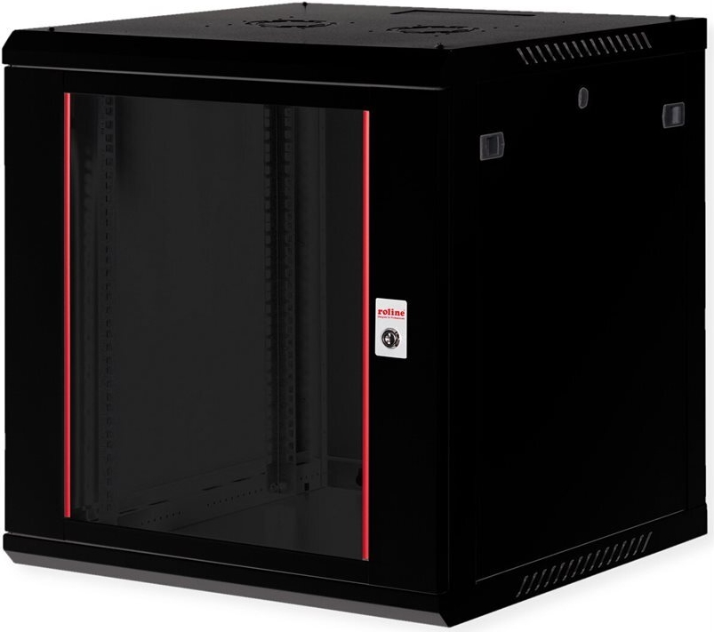 ROLINE 19 Zoll Wandgehäuse Basic Plus mit 600 mm Tiefe Die Wandgehäuse der ROLINE Basic Plus Serie wurden speziell für eine flexible Netzwerkverkabelung konzipiert. Diese Serie stellt eine ideale Balance zwischen der ROLINE PRO- und der ROLINE Basic-Serie dar. Das Bodenblech und das Dach sind mit einem ausgestanzten Kabeleinlass ausgestattet. Zusätzlich wird die Aufnahme eines Lüftermoduls, durch einen ausgestanzten Bereich im Dach ermöglicht. Im Inneren sind zwei Paar galvanisierte Profilschienen mit Höheneinheiten von 483 mm (19") verbaut, die zusätzlich in der Tiefe verstellbar sind. Die robusten Stahlkonstruktionen der Schränke bestehen aus einem starken Stahlblech und sind in Grau (RAL 7035) oder Schwarz (RAL 9005) pulverbeschichtet erhältlich. Die Seitenwände sind mit einem Schnellverschluss versehen und abnehmbar, was die Zugänglichkeit verbessert. Optional kann auch ein Schloss in den Seitenwänden verbaut werden. Die Wandmontage erfolgt in zwei einfachen Schritten: Zuerst wird die Rückwand an die Wand geschraubt und dann mit dem Gehäuse verbunden. Optional können Nivellierfüße oder Rollen verwendet werden, um die Schränke freistehend zu nutzen. • Traglast: 80 kg • Fronttür aus gehärtetem Glas, abschließbar • Seitenteile sind mit einem Schnellverschluss versehen und abnehmbar • Dach mit Ausstanzung für Lüftermodule • Kabelzuführung an Dach und Boden möglich • Lüftungsschlitze für passive Be- und Entlüftung • Inkl. Befestigungsmaterial • Schutzklasse: IP20 • Lieferung: montiert.