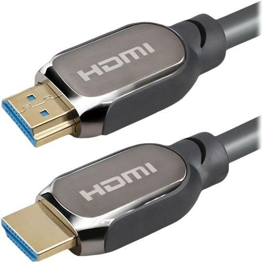 Hochwertiges HDMI Verbindungskabel mit HDMI Steckern für die optimale Übertragung von digitalen UHD Signalen bei höchsten Datenraten. Geeignet für die Übertragung von Filmen in digitaler Kinotechnik-Qualität mit bis zu 8K (7680 x 4320) bei 60Hz. Dieses Kabel ist von einem ATC (Authorized Test Center) des HDMI-Forums zertifiziert. • Unterstützt eine UHD Auflösung von bis zu 7680 x 4320 Pixel und das bei einer Bildwiederholfrequenz von 50/60 Hz (4320p)! • 60 Bilder/Sekunde • Unterstützt auch 3D und Ultra HD • HDMI Ethernet Kanal mit grossem Querschnitt • Audiorückkanal (Audio Return Channel) zur Signalweiterleitung an den Audio/Video-Receiver • Kabel mit HDMI-Stecker beidseitig • Vergoldete Kontakte für sichere Datenübertragung.