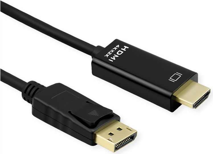 Besonders dünnes Kabel zum Übertragen von Inhalten von beispielsweise Ihrer Grafikkarte mit DisplayPort auf Ihren TV (UHDTV) - mit einer Qualität von bis zu 3840x2160 @60Hz, inkl. Audio-Übertragung! • HDTV ist der Standard für die digitale Video-Übertragung im TV-/Multimedia-Bereich für z.B.: Anbindung eines TV-Gerätes mit HDMI-Schnittstelle an ein Abspielgerät mit DisplayPort-Anschluss. • Kabel mit einem DisplayPort- und einem HDTV-Stecker. • Hinweis: Ein DisplayPort-HDTV-Kabel ist nur in einer Richtung verwendbar: Der DisplayPort-Stecker ist nur auf der Datenquellenseite verwendbar (z.B. Grafikkarte). ROLINE Displayport Kabel mit HDTV Stecker zum Verbinden eines Laptops, PCs, Monitors oder einer Grafikkarte (mit DisplayPort) mit einem HDMI-TV oder -Projektor - Bildschirmübertragungen in hochauflösender 4K Ultra HD Qualität. Die Kabel der Marke ROLINE zeichnen sich durch hochwertige Materialqualität, solide Verarbeitung und passgenau gefertigte Steckkontakte aus. Der robuste und trotzdem flexible Kabelmantel aus PVC in mattschwarz schützt effektiv vor Beschädigungen und möglichen Kabelbrüchen. Die Steckkontakte in gold sorgen für Kontaktsicherheit, flüssige Bild- sowie Audioübertragungen und höchste Stabilität bei häufigem Ein- und Ausstecken des Kabels. Das Verbindungskabel garantiert eine qualitativ hochwertige Bild- und Tonwiedergabe auf dem Anzeigegerät in hoher Auflösung.