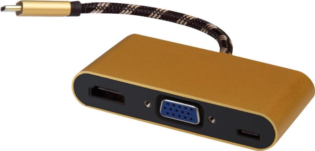 Schließen Sie Ihr MacBook, Ultrabook, Notebook/Laptop oder Ihren PC mit USB Typ C-Anschluss an einen HDMI- oder VGA-Monitor, ein TV-Gerät oder Projektor / Beamer an. • USB 3.2 Gen 1 Typ C zu HDMI/VGA Kabeladapter für Macbook, Ultrabook, Notebook/Laptop, PC oder für mobile devices wie Tablets/Smartphones • Damit können Sie Ihr Display auf einen VGA-/HDMI-fähigen Monitor, TV oder Projektor/Beamer spiegeln oder erweitern • Kein Netzteil erforderlich • Anschlüsse: HDMI- und VGA-Buchse und Typ C Stecker • Maximale Auflösung: 3840x2160 @60Hz (HDMI) • Kabellänge: ca. 10 cm.