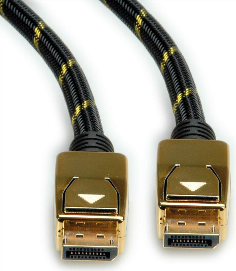 ROLINE GOLD DisplayPort Kabel mit beidseitigem DP-Anschluss für das Verbinden eines Ultrabooks, Notebooks/Laptops oder PCs mit einem Monitor, TV, Beamer oder Projektor - für Bildschirmübertragungen in exzellenter Qualität mit einer 8K Auflösung von bis zu 7680 x 4320 @30 Hz!