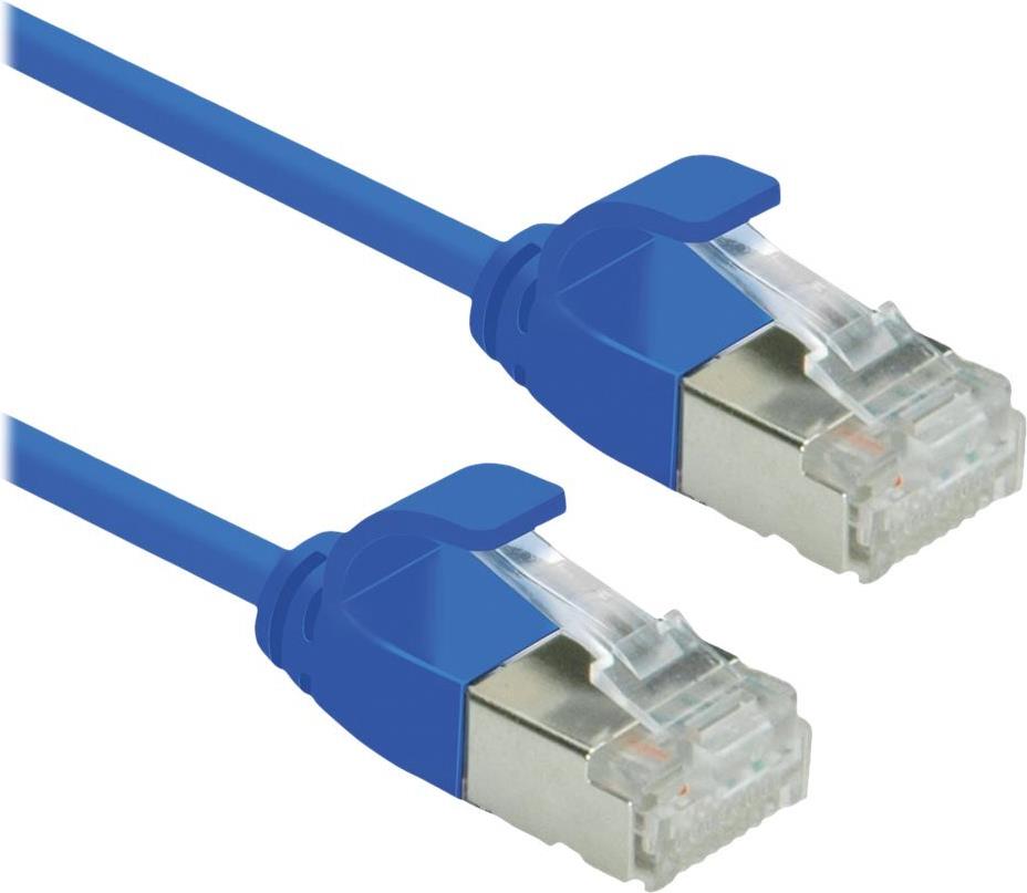 ROLINE Green - Patch-Kabel - RJ-45 (M) zu RJ-45 (M) - 15 cm - 3.6 mm - U/FTP - CAT 6a - halogenfrei, geformt, ohne Haken, verseilt - Blau, Pantone 647C (21.44.3340)