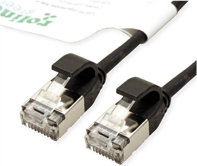 ROLINE Green - Patch-Kabel - RJ-45 (M) zu RJ-45 (M) - 1 m - U/FTP - CAT 6a - halogenfrei, geformt, ohne Haken, verseilt - Schwarz (21.44.3353)