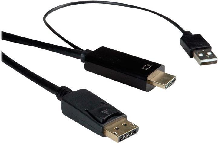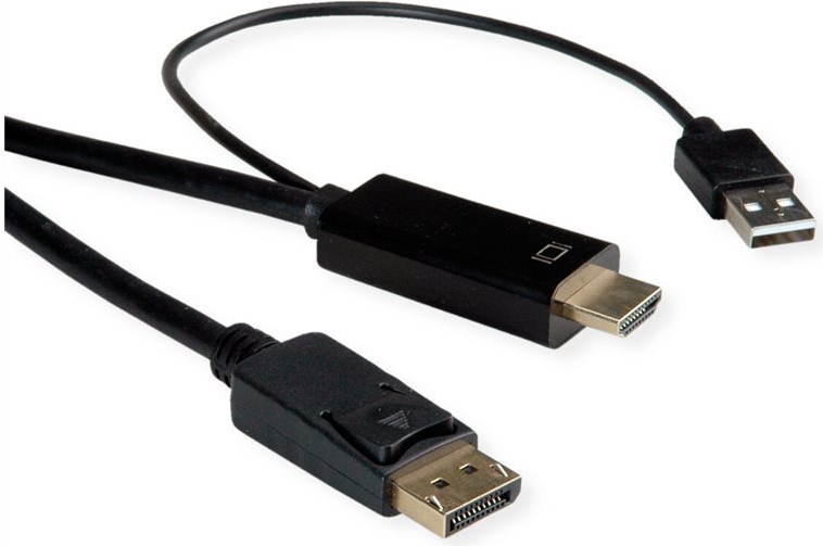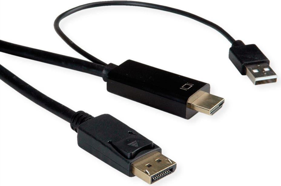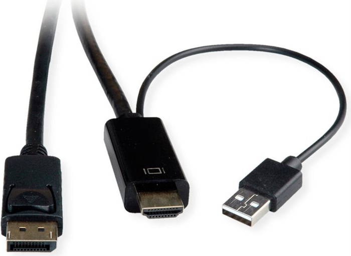 UHDTV nach DisplayPort Kabel zum Übertragen von Inhalten von beispielsweise Ihrer Grafikkarte (HDMI) auf Ihren Monitor (DP) - mit einer Qualität von bis zu 3840x2160 @60Hz, inkl. Audio-Übertragung! • HDTV (HDMI) ist der Standard für die digitale Video-Übertragung im TV-/Multimedia-Bereich für z.B. Anbindung eines Gerätes mit HDMI-Schnittstelle an einen Monitor mit DisplayPort-Anschluss • Kabel mit einem UHDTV- und einem DisplayPort Stecker • Hinweis: Ein UHDTV-DisplayPort-Kabel ist nur in einer Richtung verwendbar: Der HDMI Port-Stecker ist nur auf der Datenquellenseite verwendbar (z.B. Grafikkarte) ROLINE HDMI Kabel mit Displayport Stecker zum Verbinden eines Laptops, PCs, Monitors oder einer Grafikkarte mit einem TV, Beamer oder Projektor (DP Anschluss) - Bildschirmübertragungen in hochauflösender 4K Qualität. Die Kabel der Marke ROLINE zeichnen sich durch hochwertige Materialqualität, solide Verarbeitung und passgenau gefertigte Steckkontakte aus. Der robuste und trotzdem flexible Kabelmantel aus PVC in mattschwarz schützt effektiv vor Beschädigungen und möglichen Kabelbrüchen. Die Steckkontakte in gold sorgen für Kontaktsicherheit, flüssige Bild- sowie Audioübertragungen und höchste Stabilität bei häufigem Ein- und Ausstecken des Kabels. Das Verbindungskabel garantiert eine qualitativ hochwertige Bild- und Tonwiedergabe auf dem Anzeigegerät in hoher Auflösung.