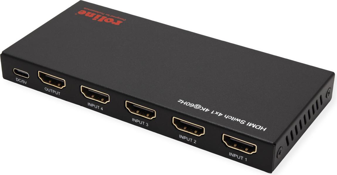 ROLINE HDMI Switch 4fach 4K60Hz HDCP2.3+ IR Fernbd. (14.01.3617)