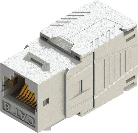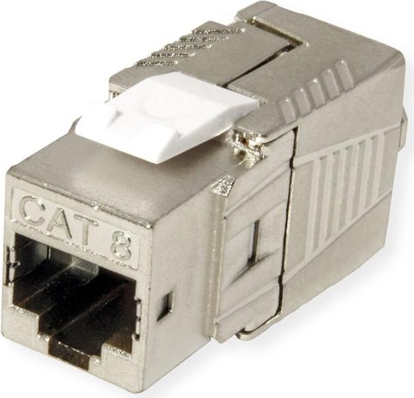Hochwertiger Keystone für den Einsatz in 10 Gigabit Ethernet Netzwerken • Anschluss der Kabel an die Keystones erfolgt werkzeuglos - die Kabeladern werden einfach in die Führungen gelegt; das Modul wird geschlossen und zusammengedrückt - fertig ist der Anschluss • Kat.8.1, für 10 bis 40 GBit/s geeignet • Keystones für AWG 22 - 24 Volldraht (AWG 23 - 26 Litzenkabel nur für Kat.6A) • Voll geschirmt, 360°-Schirmkontaktierung • Für Kabeldurchmesser 5,6 - 8,5 mm • Aufgedruckte Farbcodierung gemäß EIA / TIA 568 • Robustes Zinkdruckgussgehäuse, vernickelt • Die Keystone-Module können in einen 19"-Modulträger (26.11.0360 in schwarz oder 26.11.0359 in lichtgrau) mit Erdungsanschluss eingeklinkt werden. Oder sie werden zusammen mit einer Modulaufnahme 25.16.8579 zur Anschlussdose. Kategorie 8, der Standard für Twisted-Pair-Verkabelungen der nächsten Generation, ermöglicht eine bis zu viermal schnellere Übertragung der Daten auf der gleichen Verkabelungsart und unterstützt 25GBASE-T- und 40GBASE-T-Anwendungen für kurze Distanzen. Unsere Kat. 8 Kabel sind nicht nur halogenfrei und schwer entflammbar (LSOH), sondern auch GHMT zertifiziert und damit auf ihre Qualität und Performance geprüft.
