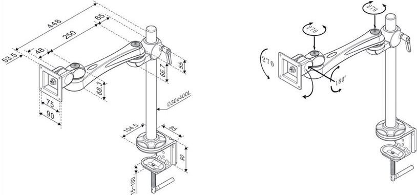 • Der LCD-Monitorarm Trägerstange kann flexibel auf den besten Blickwinkel für den Betrachter eingestellt werden