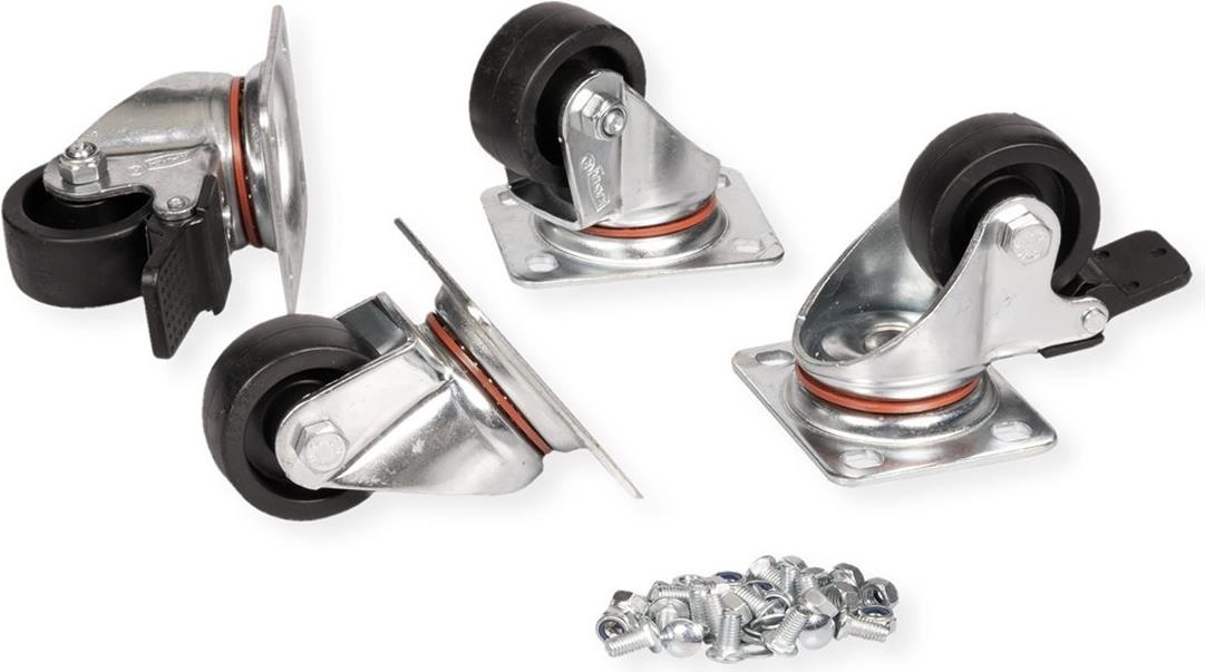 ROLINE Lenkrollen für Server- und Netzwerkschränke 250 kg Die ROLINE Feststellbaren Laufrollen werden im 4er-Set inklusive Montagematerial geliefert und sind sofort einsatzbereit. Mit einer Belastbarkeit von 250 kg pro Rolle, gewährleisten sie eine hohe Stabilität für Ihre 19" Server- und Netzwerkschränke.