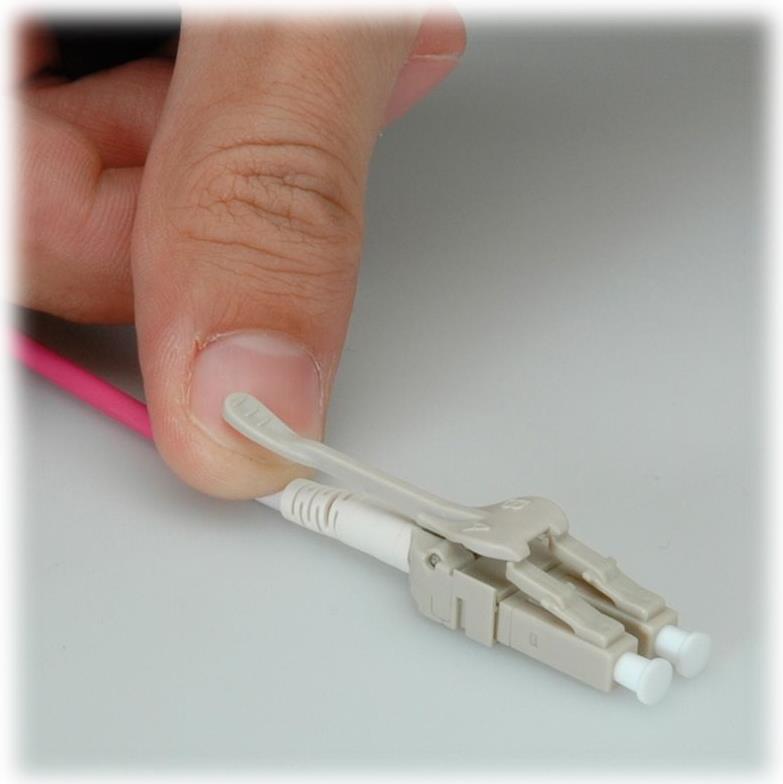Der LC-Stecker mit seinem kleinen Querschnitt erlaubt hohe Dichten im Verteilerbereich. Überall, wo es zu solch hohen Dichten kommt, wird es schwierig, nahe genug an den Stecker zu kommen, damit man sicher und sauber patchen kann. Nun bieten wir die Lösung für dieses Problem! Die Stecker der neuen Data-Center-Kabel sind so konstruiert, dass ein Administrator nicht mehr an das eigentliche Steckergehäuse greifen muss, vielmehr einige Zentimeter vom Patchpanel entfernt die Verriegelung des Steckers lösen und so das Kabel problemlos abziehen kann.Hauptmerkmale