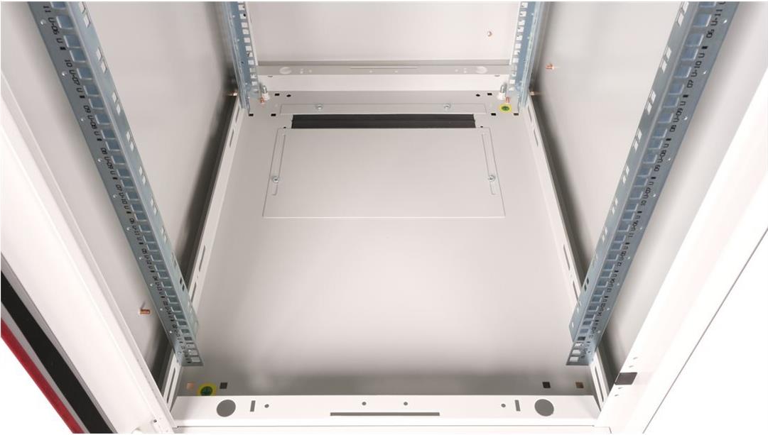 ROLINE 19 Zoll Netzwerkschrank Pro 16 HE 600x800 BxT Glastür grau Die Netzwerkschränke der ROLINE Pro Serie wurden entwickelt, um eine besonders komfortable und flexible Netzwerkverkabelung zu ermöglichen. Mit Bürsteneinlässen im Dach- und Bodenbereich (ab 26HE und 800 mm Schrankbreite), einem aufschiebbaren Einlass im Bodenchassis mit Moosgummidichtung sowie Bürstenleisten ober- und unterhalb der Rücktür (ab 26HE) bieten sie vielseitige Einsatzmöglichkeiten für verschiedene Anwendungsszenarien. Vertikale Kabelführungskanäle mit Blende, installiert neben den Profilschienen (ab 800 mm Schrankbreite), vervollständigen das Design. Ein abgesetzter, abnehmbarer Deckel mit Lüftungsschlitzen verbessert die Luftzirkulation und ermöglicht eine einfache Installation eines Lüftermoduls. Die Lüftereinheit kann von oben ein- und ausgebaut werden, ohne dass die Komponenten im Inneren betroffen sind. Im Inneren sind zwei Paar galvanisierte 19"-Profilschienen verbaut, die in beide Richtungen ablesbar und in der Tiefe verstellbar sind. Sie sind zudem mit zusätzlichen Tiefenstreben im Schrank verbunden. Jeder Schrank besteht aus einer robusten Stahlkonstruktion mit einer Materialstärke von bis zu 1,5 mm Stahlblech. Die Farbgebung erfolgt mittels elektrostatischer Pulverbeschichtung in den Standardfarben Grau (RAL 7035) und Schwarz (RAL 9005). Modular abnehmbare Seitenwände und Türen verbessern die Zugänglichkeit. Ein Wechsel des Türanschlags ist möglich. Die Schränke sind bei Bedarf auch vollständig zerlegbar.