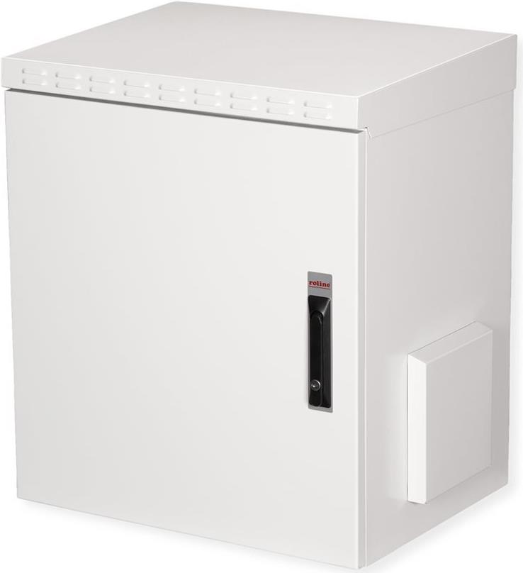 19 Zoll Wandgehäuse Pro 12 HE 600x450 BxT IP55 outdoor grau Die outdoor-Netzwerkschränke zur Wandmontage sind nach Schutzart IP55 entwickelt und speziell für den Einsatz in rauen Umgebungen, insbesondere im Außenbereich, ausgelegt. Die Wandgehäuse bieten ein 3-Punkt-Verriegelungssystem mit abschließbarem Schwenkgriff und isolierten PG-Kabelverschraubungen. Integrierte Lüftungsfiltergehäuse gewährleisten die Belüftung und bieten Schutz vor Wasser- und Staub gemäß IP54. Diese Schränke sind ideal für Außenbereiche, die Umwelteinflüssen wie Regen, Hagel, und Spritzwasser ausgesetzt sind. Das Dachchassis ist für die Installation eines Lüftermoduls mit einem gefilterten Bereich ausgestattet. Im Inneren befinden sich ein Paar galvanisierte 19"-Profilschienen, die in beide Richtungen ablesbar und in der Tiefe verstellbar sind. Jeder Schrank besteht aus einer robusten Stahlkonstruktion mit einer Materialstärke von bis zu 2,0 mm. Die Farbgebung erfolgt durch elektrostatische Pulverbeschichtung in der Standardfarbe Grau (RAL 7035). Die Wandmontage erfolgt mit den beigelegten Haltewinkeln. Optional können die Schränke mit einem Sockel als freistehende Lösung genutzt oder mithilfe eines Befestigungssets an Masten angebracht werden. • Traglast: 100 kg • Abschließbare Stahl-Fronttür mit Schwenkhebelgriff • 3-Punkt-Verriegelung an der Fronttür • Fronttür mit Erdung und zwei angeschweißten, stärkenden Balken • Kabelzuführung im Boden • Dach bietet mit einzubauenden Lüftermodulen Heißluftabfuhr aus dem Gehäuse, Austanzung für Lüftermodule • Integrierte Lüftungsfiltergehäuse • IP Schutzklasse: IP55.
