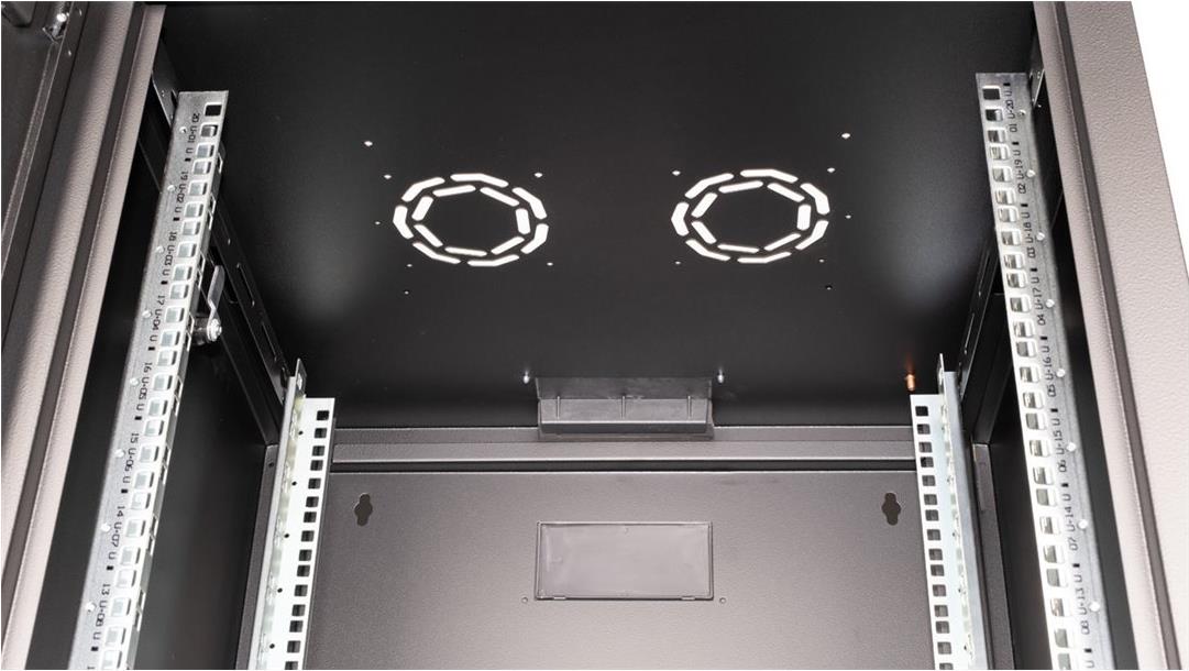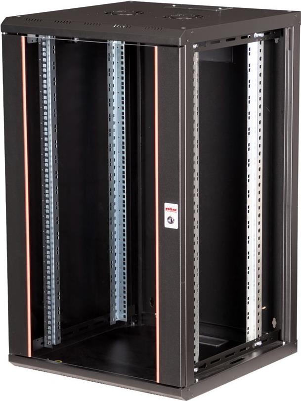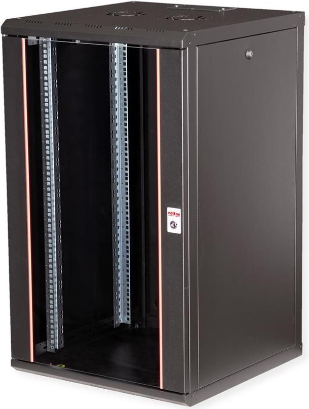 ROLINE 19 Zoll Wandgehäuse Pro 20 HE 600x600 BxT schwarz Die Wandgehäuse der ROLINE Pro Serie wurden speziell für eine flexible Netzwerkverkabelung konzipiert. Jeder Schrank verfügt über einen aufschiebbaren Kabeleinlass im Dach mit Moosgummidichtung. Die Rückwand und das Bodenblech sind mit ausgestanzten Kabeleinlässen und Kunststoffabdeckungen ausgestattet. Das Dachchassis bietet einen ausgestanzten Bereich zur Aufnahme eines Lüftermoduls. Im Inneren sind zwei Paar galvanisierte Profilschienen mit Höheneinheiten von 483 mm (19") verbaut, die zusätzlich in der Tiefe verstellbar sind. Die robusten Stahlkonstruktionen der Schränke bestehen aus bis zu 1,5 mm starkem Stahlblech und sind in Grau (RAL 7035) oder Schwarz (RAL 9005) pulverbeschichtet erhältlich. Die Seitenwände und die Fronttür sind modular abschließ- und abnehmbar, was die Zugänglichkeit verbessert. Die Wandmontage erfolgt in zwei einfachen Schritten: Zuerst wird die Rückwand an die Wand geschraubt und dann mit dem Gehäuse verbunden. Optional können Nivellierfüße oder Rollen verwendet werden, um die Schränke freistehend zu nutzen. • Traglast: 100 kg • Fronttür aus gehärtetem Glas, abschließbar • 1-Punkt-Verriegelung an der Fronttür • Seitenteile sind abschließ- und abnehmbar • Kabelzuführung an Rückseite und Boden • Dach mit Austanzung für Lüftermodule • Lüftungsschlitze für passive Be- und Entlüftung • Inkl. Befestigungsmaterial • IP Schutzklasse: IP20.