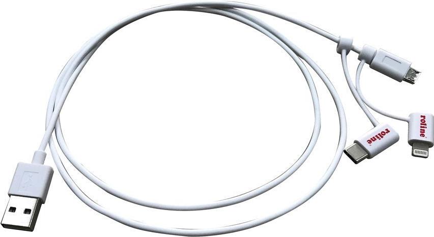 Schließen Sie nahezu alle gängigen Smartphones oder Tablets mittels Apple Lightning, USB Typ C oder USB Micro B Stecker an beispielsweise Ihren PC oder ein Netzteil an - geeignet zum Laden und für Datentransfers!