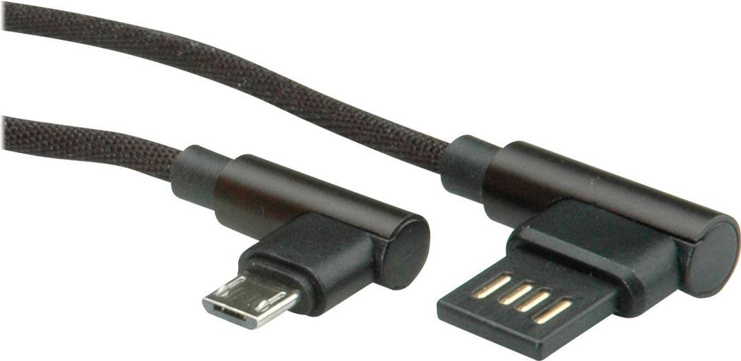 • ROLINE USB 2.0 Kabel, gewinkelt, Typ A reversibel - Micro B, ST/ST, schwarz, 0,8 m (11.02.8720)