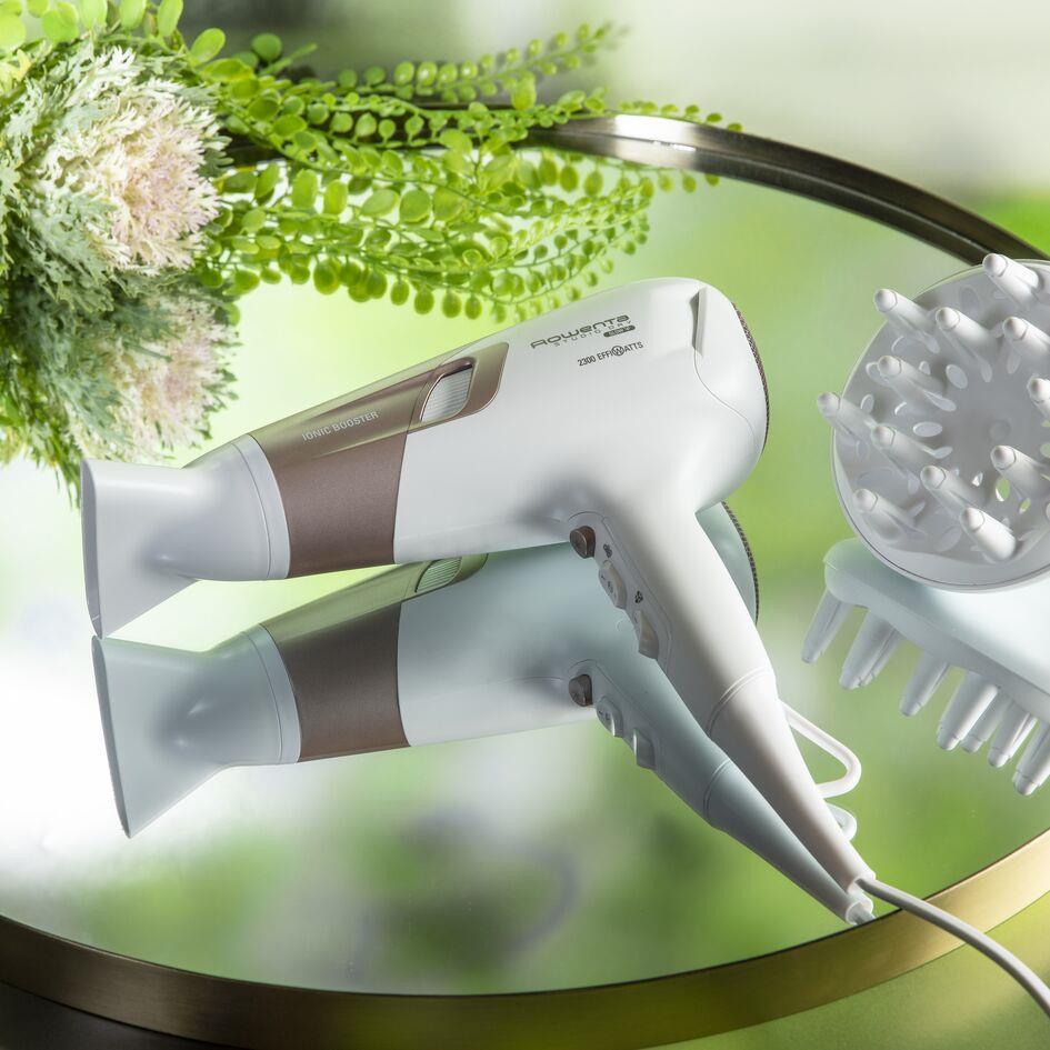 Für einen umwerfenden Look und exquisiten Glanz, der Rowenta Studio Dry Glow Haartrockner sorgt für tadelloses Trocknen, ganz einfach gemacht. Der Ionen-Booster dieses Haartrockners reduziert Frizz und statische Aufladung, um Ihrem Style ein Lifting zu verleihen und für geschmeidiges Haar zu sorgen, das sich einfach kämmen lässt. Für strahlenden Glanz und einen bestechenden Glow. Erleben Sie die außergewöhnliche Haartrocknerleistung mit moderner Effiwatts-Technologie, energiesparender Leistung und höchster Effizienz.
