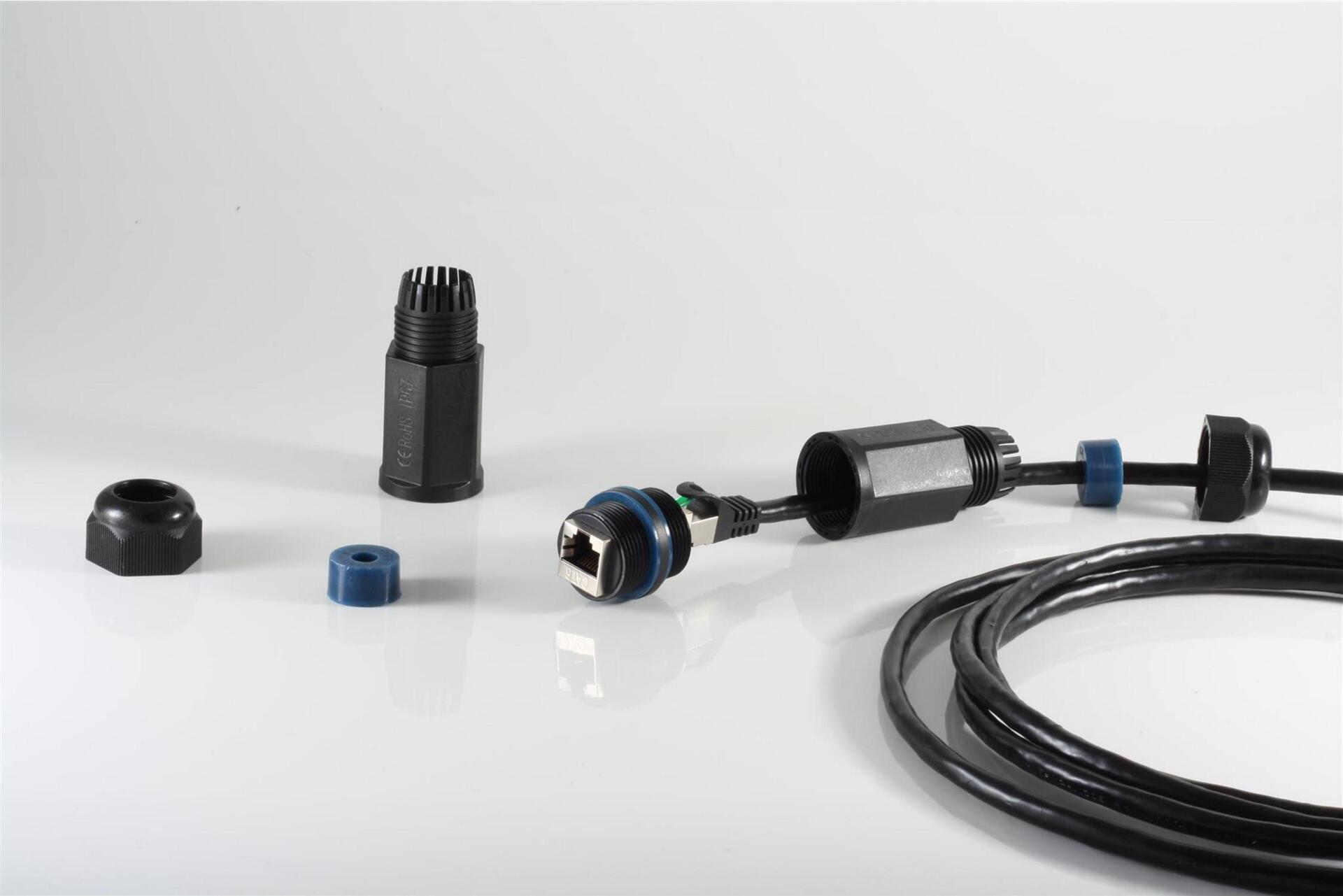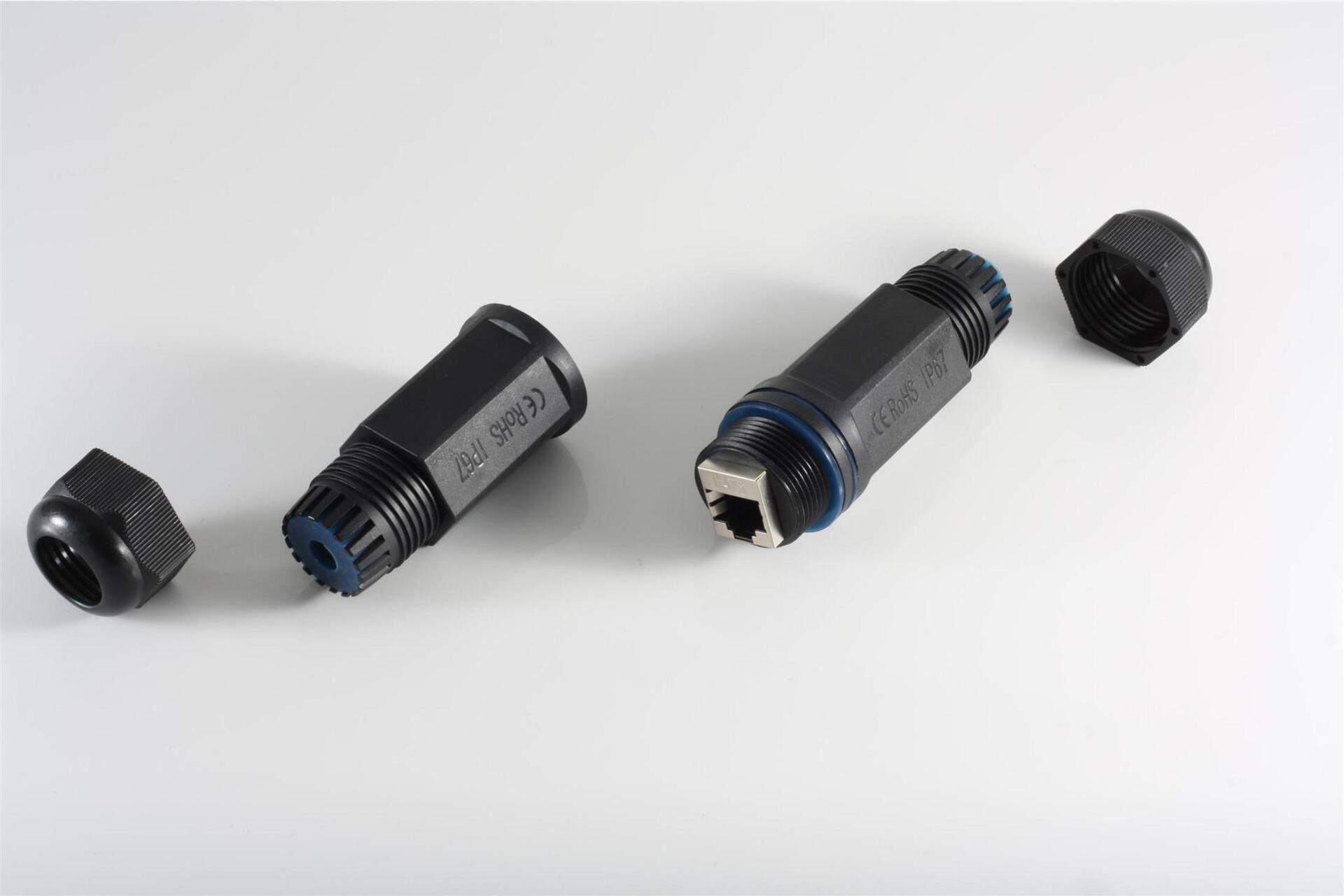 Dieser RJ-45 Verbinder ist für den Einsatz im Außenbereich geeignet. Mit IP67 ist er für ein zeitweiliges Untertauchen und vor Staub ...