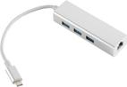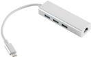 Ethernet Adapter, USB 3.1 C Stecker auf RJ45 Etherneth Buchse + 3x USB Buche.