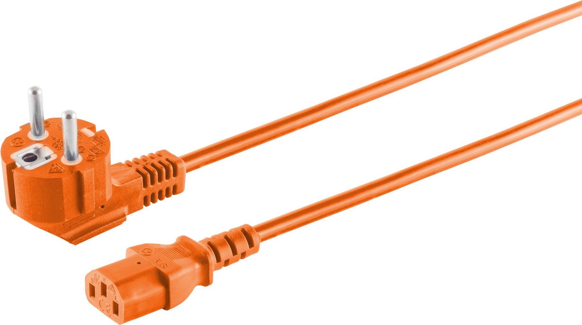 S/CONN maximum connectivity Netzanschlusskabel, Schutzkontaktstecker 90° auf Kaltgerätebuchse, 230 V für Kaltgeräte, CEE7/7-C13, VDE, orange, 3,0m (09-05047)