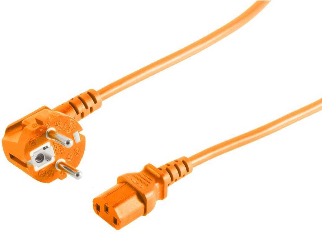 S/CONN maximum connectivity Netzanschlusskabel, Schutzkontaktstecker 90° auf Kaltgerätebuchse, 230 V für Kaltgeräte, CEE7/7-C13, VDE, orange, 5,0m (09-05057)