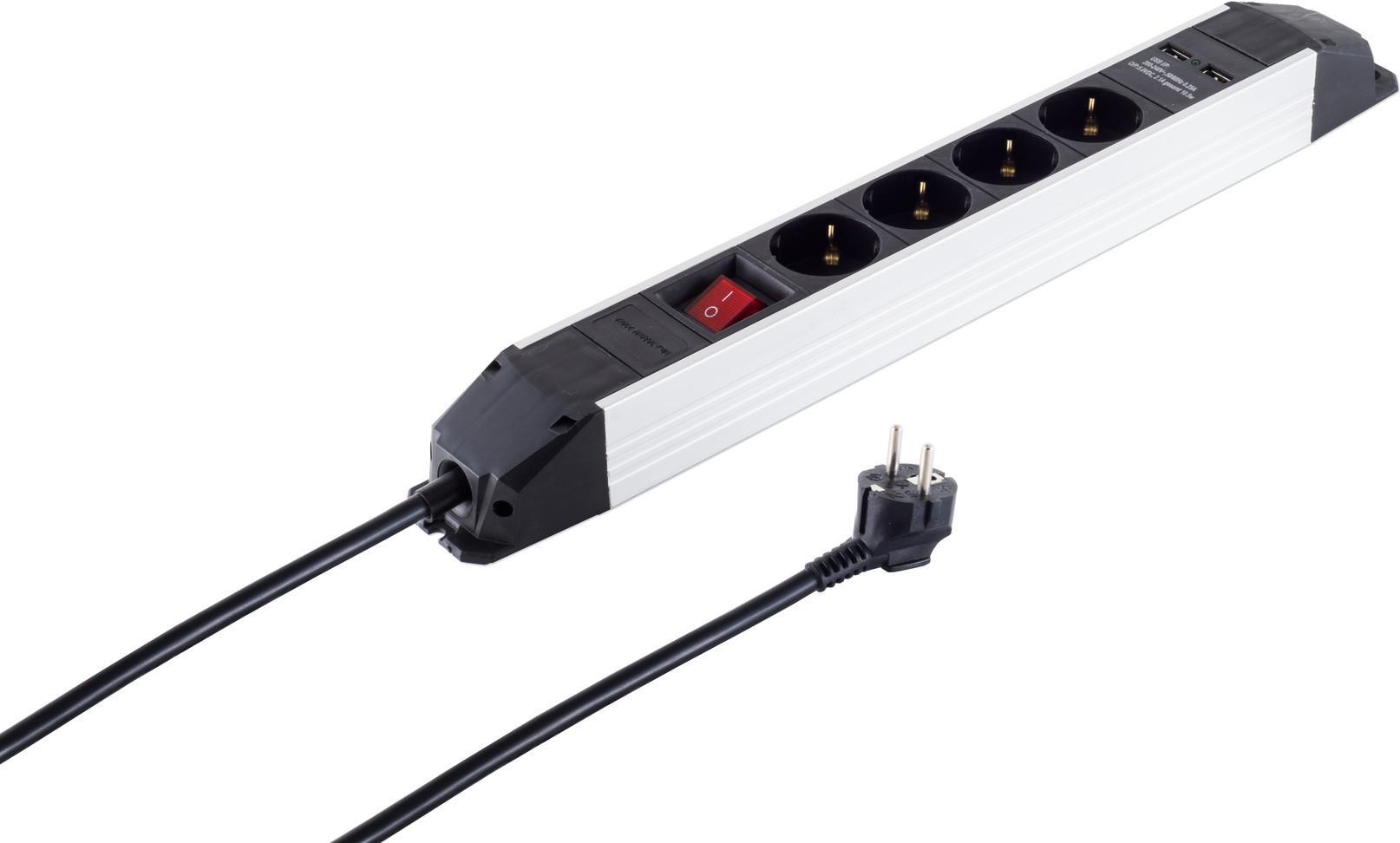 S/CONN maximum connectivity Alu Steckdosenleiste 4-fach, USB Buchse (09-20245)