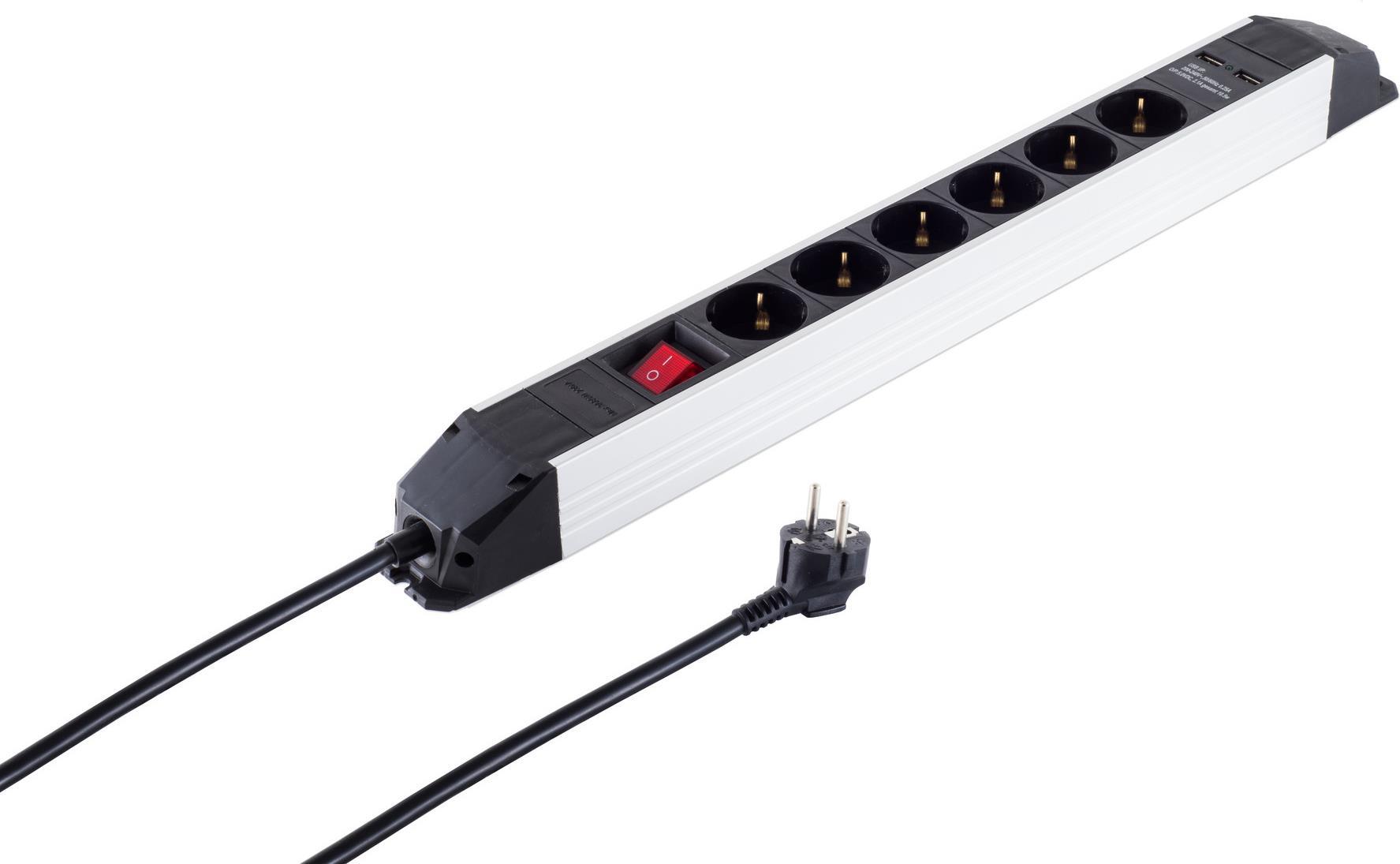 S/CONN maximum connectivity Alu Steckdosenleiste 6-fach, USB Buchse (09-20265)
