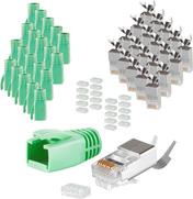 S/CONN maximum connectivity Netzwerk Modular Stecker RJ45 SET für Verlegekabel bis AWG 23, Stecker mit Zugentlastung, Einführhilfe und Tülle, grün VE 20 (72067-20G)