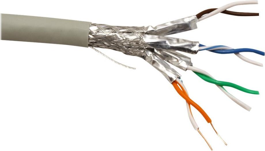 Massivdraht Netzwerk-Installationskabel der Kategorie 6A für strukturierte Gebäudeverkabelung • Twisted Pair Installationskabel • Kabel für eine strukturierte Gebäudeverkabelung • Für den Einsatz in 10-Gigabit-Ethernet-Netzwerken • Doppelt geschirmtes (PiMF) Kabel • Impedanz: 100 Ohm • Farbe: grau • Aufbau: 8 Adern, Kupfer, Massivdraht, paarweise Schirmung in alu-kaschierter Folie, Gesamtabschirmung in verzinntem Kupfergeflecht • Wir empfehlen für den Aufbau einer geschirmten strukturierten Kat.6a Verkabelung folgende Komponenten zu verwenden: 21.15.0883 ROLINE Installationskabel, Massivdraht, Kat. 6a, S/FTP 25.16.8579 Modulaufnahme für Keystones, 2fach 26.11.0367 ROLINE Kat.6a Keystone, geschirmt 26.11.0359/.0360 ROLINE 19"-Modulträger, 24 Steckplätze 21.15.2705 ROLINE S/FTP Patchkabel, Kat.6a, grau, 5m Halogenfrei. Flammwidrig. Raucharm.