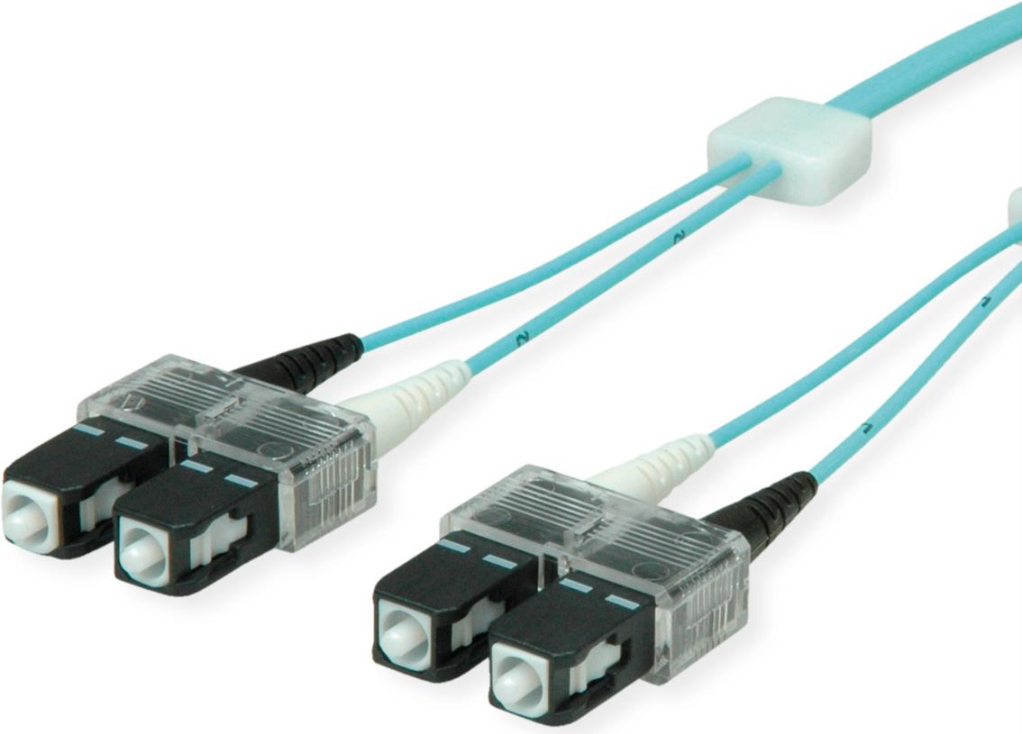 ZVK GmbH EasyLan FO LED Patch Cord Premium, Duplex - Patch-Kabel - SC multi-mode (M) zu SC multi-mode (M) - 1 m - Glasfaser - Duplex - 50/125 Mikrometer - OM3 - Aquamarin, RAL 6027 (LSD31100010)
