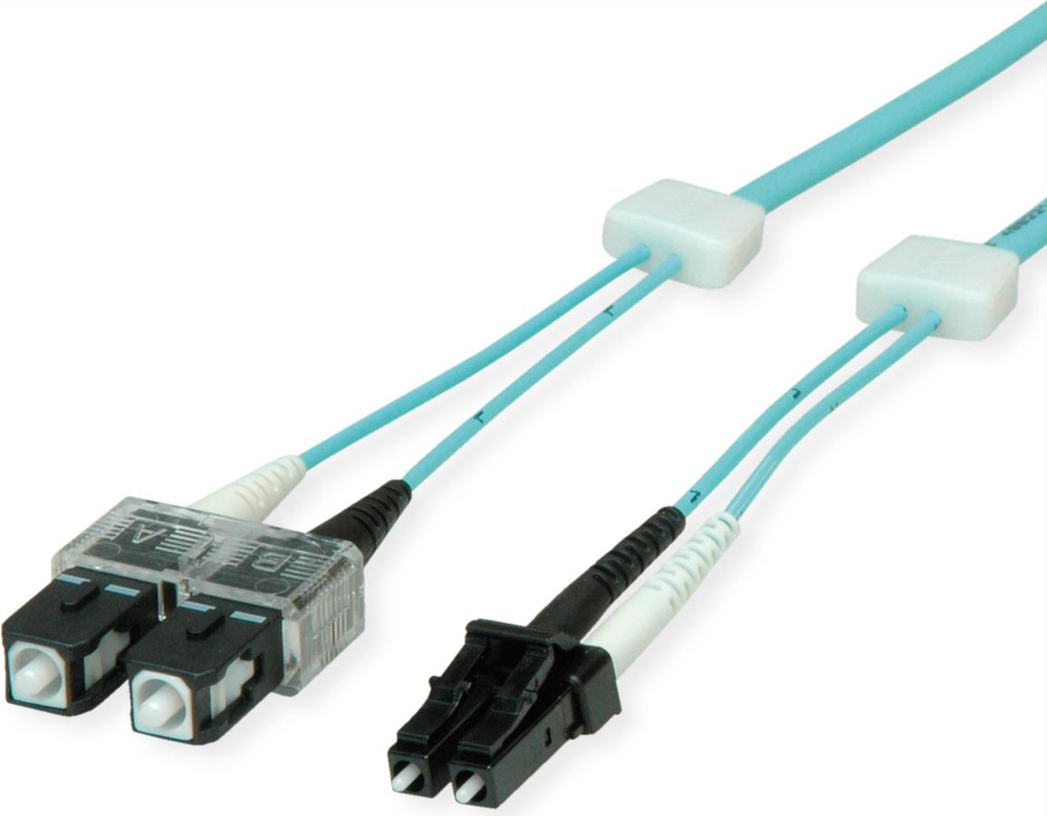 ZVK GmbH EasyLan FO LED Patch Cord Premium, Duplex - Patch-Kabel - SC multi-mode (M) zu LC Multi-Mode (M) - 10 m - Glasfaser - Duplex - 50/125 Mikrometer - OM3 - Aquamarin, RAL 6027 (LSD32100100)
