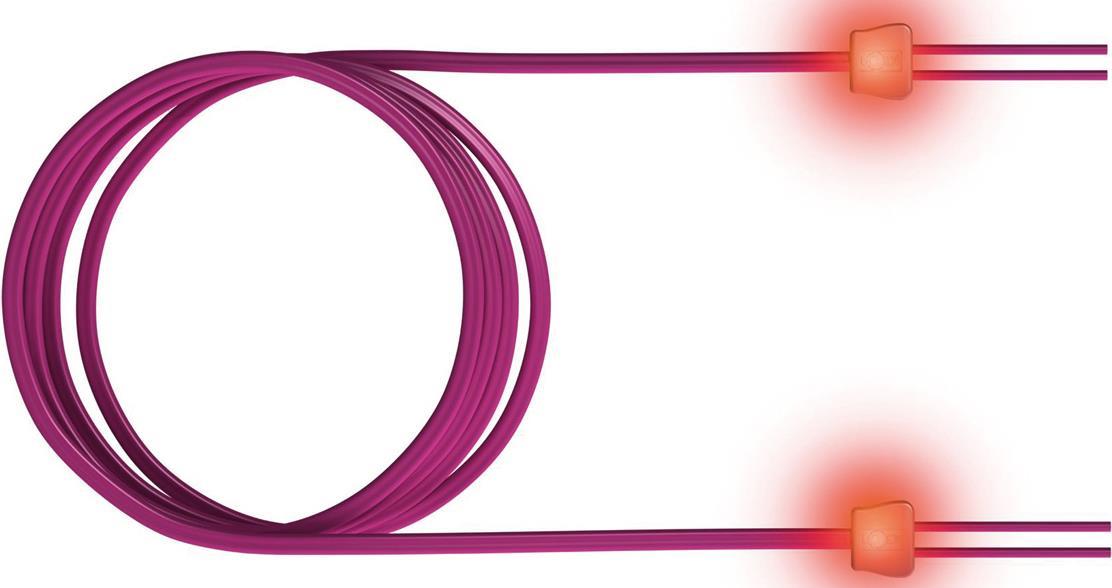 LWL-LED-Patchkabel als Verbindungs- oder Adapterkabel. Die Standardausführung der Verbindungskabel ist gekreuzt. Beim LC-Duplex ist ein nachträgliches Drehen der Stecker zueinander möglich. Das LWL-LED-Patchkabel ist besonders für den Einsatz in Büro, Industrie und Rechenzentren entwickelt worden. Durch den Kabelaufbau ist gewährleistet, dass die optischen Übertragungsparameter ein Höchstmaß an Datensicherheit bieten. Das patentierte Verfahren zur einfachen Zuordnung der Kabelenden zueinander erhöht die Betriebssicherheit erheblich, ein unbeabsichtigtes Ziehen der Patchleitungen wird nahezu ausgeschlossen. Nach der Kontaktierung einer Patchkabelseite mit dem Detektor werden beide Kabelenden elektrisch angeregt und leuchten. Das LWL-LED-Patchkabel kann mit allen gängigen LWLSteckern bestellt werden.