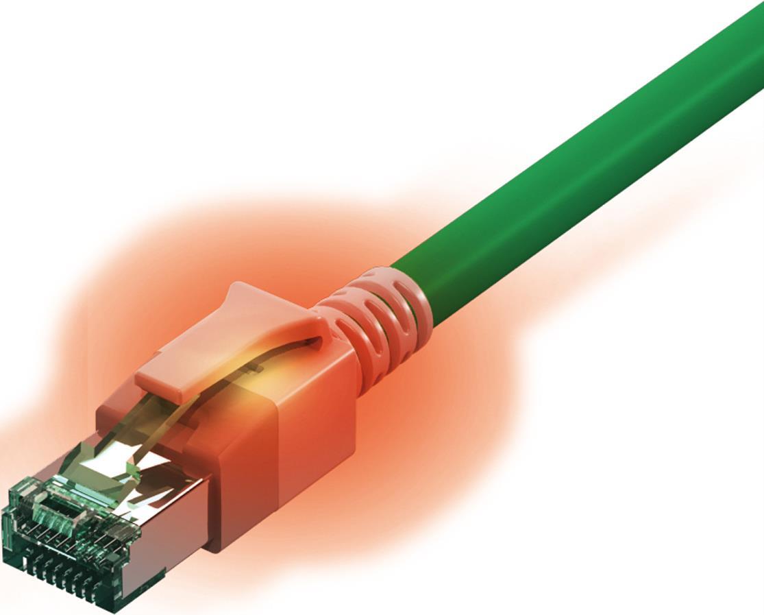 Das DualBoot LED Patchkabel ist besonders für den Einsatz in Büros, Industrie und Rechenzentren entwickelt worden. Durch den robusten Kabelaufbau ist gewährleistet, dass die elektrischen Übertragungsparameter nur durch Gewaltanwendung beeinflussbar sind. Der verwendete Kombischirm (PiMF + Geflecht mit 65% Bedeckung) zusammen mit den 360° geschirmten RJ45-Steckern bietet ein Höchstmaß an Datensicherheit. Das Verfahren zur einfachen Zuordnung der Stecker zueinander erhöht die Betriebssicherheit erheblich, ein unbeabsichtigtes Ziehen der Patchleitungen wird nahezu ausgeschlossen. Nach der Kontaktierung einer Patchkabelseite mit dem Detektor werden beide RJ45-Gehäuse optisch angeregt und leuchten somit. Die Dienstzuordnung kann nachträglich durch Anbringung einer Farbmarkierung erfolgen, zusätzlich kann zur automatischen Netzwerkerkennung ein RFID nachgerüstet werden.