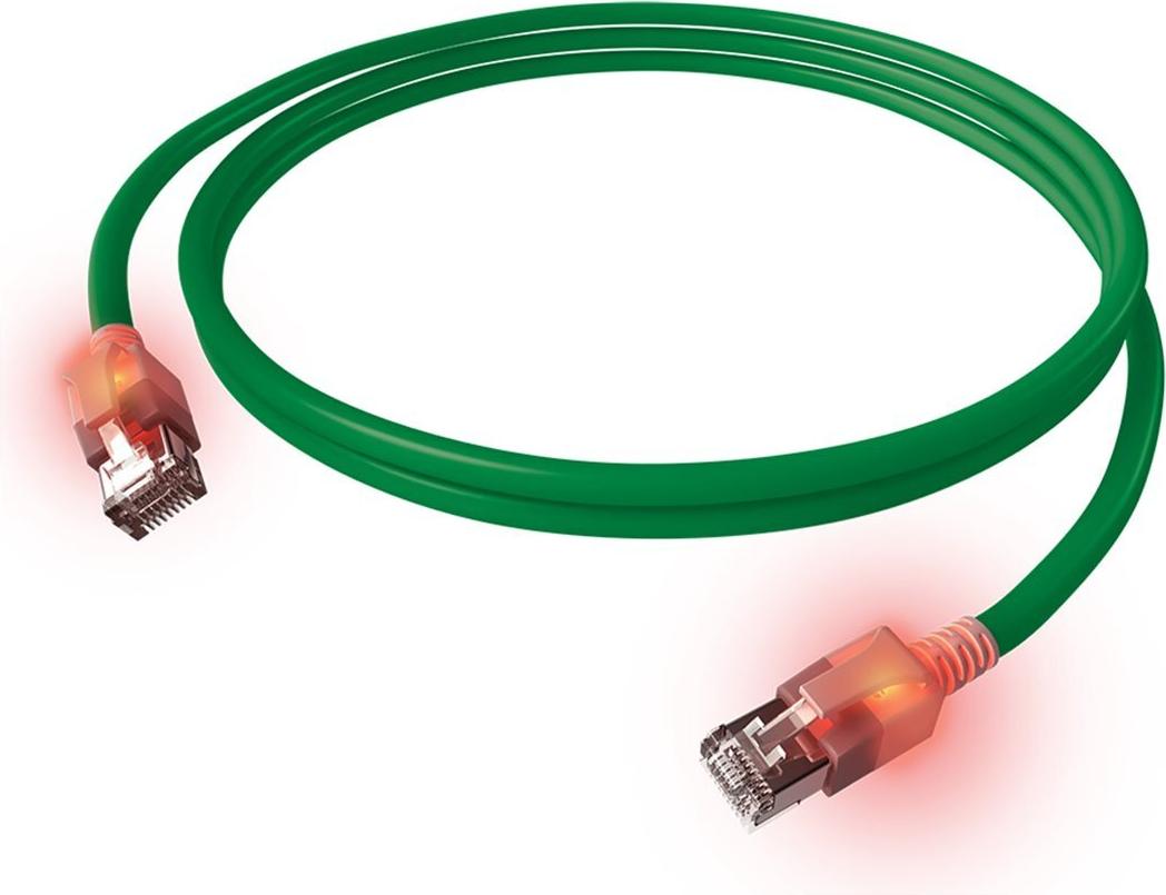 Das DualBoot LED Patchkabel ist besonders für den Einsatz in Büros, Industrie und Rechenzentren entwickelt worden. Durch den robusten Kabelaufbau ist gewährleistet, dass die elektrischen Übertragungsparameter nur durch Gewaltanwendung beeinflussbar sind. Der verwendete Kombischirm (PiMF + Geflecht mit 65% Bedeckung) zusammen mit den 360° geschirmten RJ45-Steckern bietet ein Höchstmaß an Datensicherheit. Das Verfahren zur einfachen Zuordnung der Stecker zueinander erhöht die Betriebssicherheit erheblich, ein unbeabsichtigtes Ziehen der Patchleitungen wird nahezu ausgeschlossen. Nach der Kontaktierung einer Patchkabelseite mit dem Detektor werden beide RJ45-Gehäuse optisch angeregt und leuchten somit. Die Dienstzuordnung kann nachträglich durch Anbringung einer Farbmarkierung erfolgen, zusätzlich kann zur automatischen Netzwerkerkennung ein RFID nachgerüstet werden.