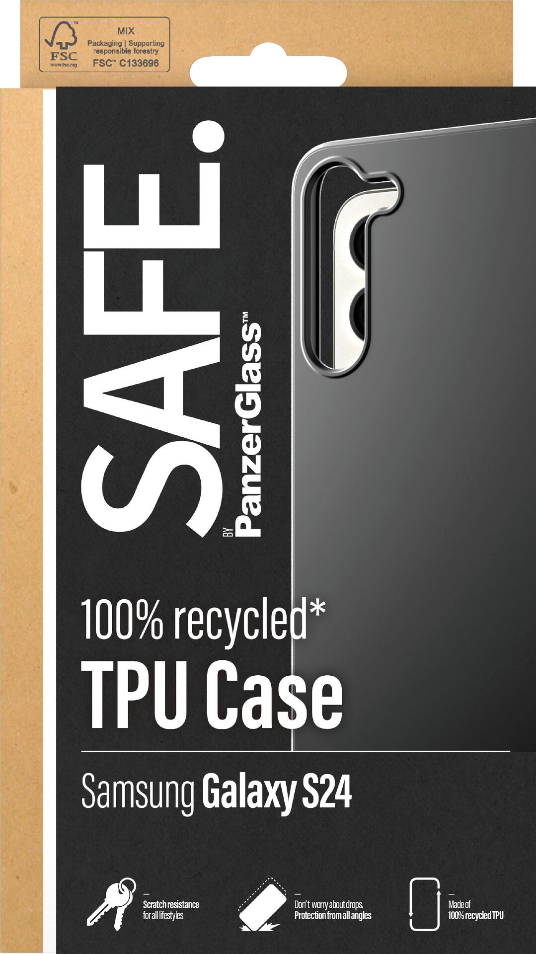 Die Soft TPU Hülle von SAFE. by PanzerGlass™? schützt dein Handy vor Stürzen aus der Tasche, Stößen auf dem Rücksitz und verrückten Stürzen am Freitagabend. Die dünne, schlanke und schwarze Hülle besteht zu 100 % aus recyceltem Kunststoff und schützt dein Handy effektiv, während du vollen Zugriff auf alle Funktionen hast. Sie ist kompatibel mit kabellosem Aufladen und vergilbt nicht, so dass deine Hülle Tag für Tag gut aussieht - auch wenn sie Sonnenlicht und Strandpartys ausgesetzt ist.Die Soft TPU Hülle schützt und verlängert die Lebensdauer deines Handys, damit du es eines Tages an jemand anderen weitergeben kannst, der es genauso liebt wie du. Das ist eine Möglichkeit, auf eine nachhaltigere Zukunft hinzuarbeiten. Eine andere ist, wenigerVerpackung zu verwenden: Bei dieser Hülle haben wir es geschafft, die Papierverpackung um etwa 30%* im Vergleich zu früheren Modellen zu reduzieren. Und wie alle unsere Produkte wird sie in einer recycelbaren FSC™-zertifizierten Box geliefert.Die Installation ist einfach. Klicke die Hülle einfach auf und du kannst aufatmen, weil du weißt, dass du nie wieder den schrecklichen Anblick fürchten musst, dass dein Handy zu Boden fällt. Das wird vielleicht nicht passieren, aber wenn doch, wirst du bereuen, dass du nicht auf "In den Warenkorb" geklickt hast. Und denk daran: Wenn du dein Handy besonders gut schützen willst, kannst du die Soft TPU Hülle mit einem Displayschutz und einem Kameraschutz kombinieren.*Gemessen von einem Drittlabor durch den Vergleich der Masse der neuen Papierverpackung, die 2023 eingeführt wurde, mit der Masse der vorherigen Papierverpackung, die 2022 eingeführt wurde (CPRTC, Bericht Nr. ZSA20231301-0016).Hauptmerkmale