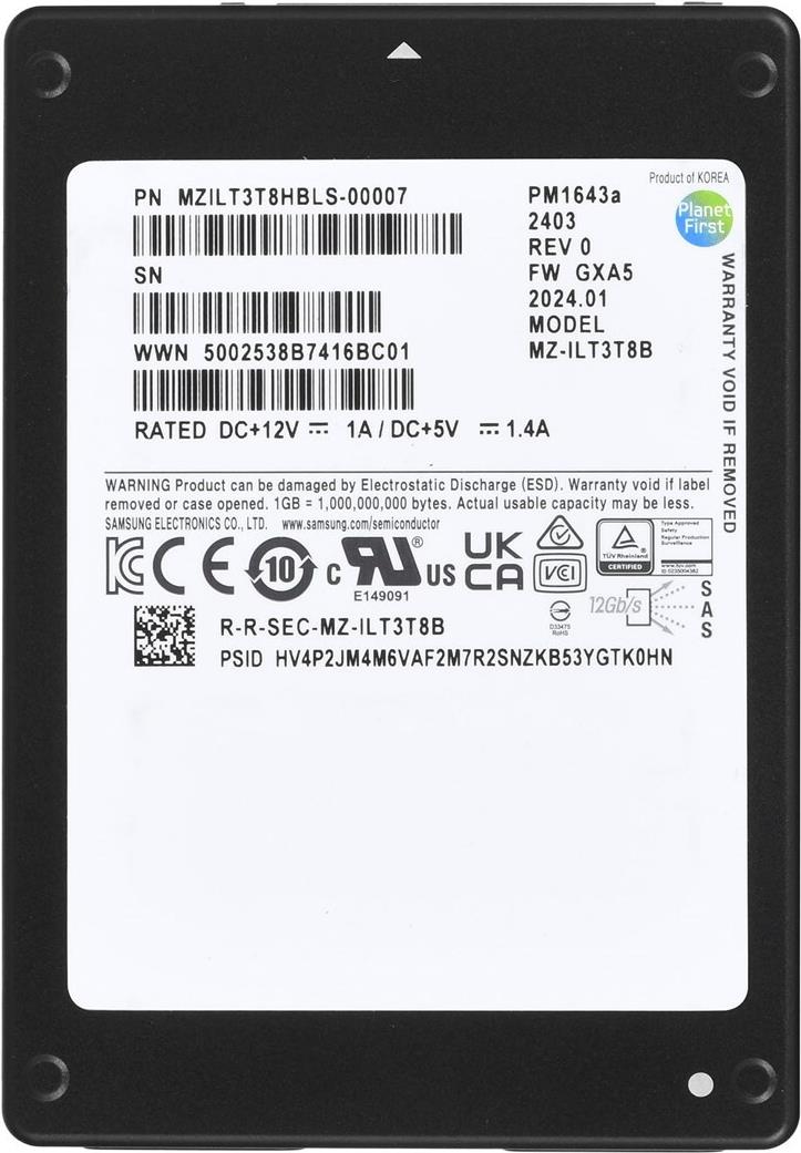 • Samsung SSD PM1643a 3.84 TB SAS (12 Gb/s) 2.5" OEM Enterprise