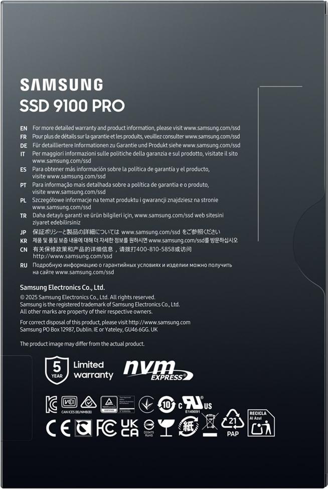 Die Samsung 9100 PRO M.2 1 TB SSD bietet Leistung und Zuverlässigkeit für Speicheranforderungen. Mit einer internen Datenrate von bis zu 14700 MB/s ist diese SSD darauf ausgelegt, die Produktivität zu steigern, und eignet sich ideal für Gamer, Content-Ersteller und Profis, die einen schnellen Datenzugriff benötigen. Der integrierte Kühlkörper sorgt für ein effizientes Wärmemanagement, während Funktionen wie TRIM-Unterstützung und Auto Garbage Collection Algorithm zur Langlebigkeit und Effizienz des Laufwerks beitragen. Die Samsung 9100 PRO kann in einem breiten Temperaturbereich von 0 °C bis 70 °C betrieben werden und ist in verschiedenen Umgebungen belastbar. Sie verwendet die Samsung V-NAND TLC-Technologie und die Intelligent TurboWrite 2.0-Technologie, die schnellere Schreib- und Lesevorgänge ermöglicht. Mit einer Kapazität von 600 TB unterstützt diese interne Festplatte auch die Hardwareverschlüsselung mit AES 256-Bit und gewährleistet so Datensicherheit ohne Leistungseinbußen.