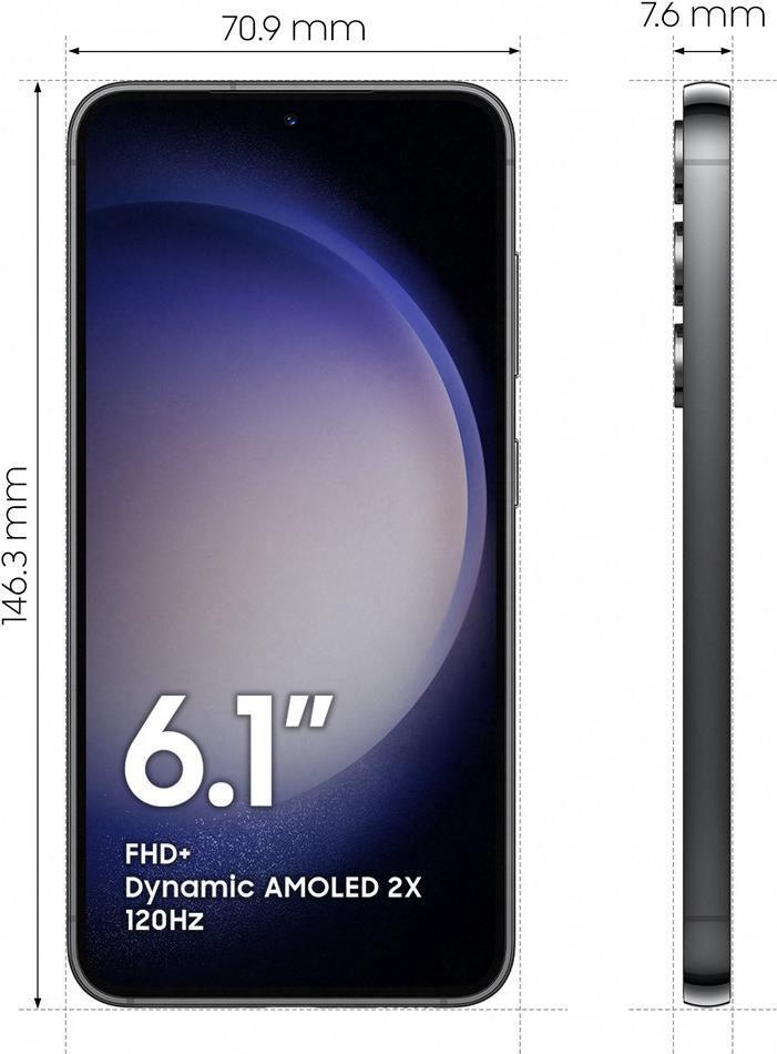6.1", 2340x1080 Pixel, 16 Mio. Farben, AMOLED, kapazitiver Touchscreen, Gorilla Glass Victus 2, Kameraloch, HDR (HDR10+), 48Hz-120Hz Aktualisierungsrate, 240Hz Abtastrate, 422ppi |