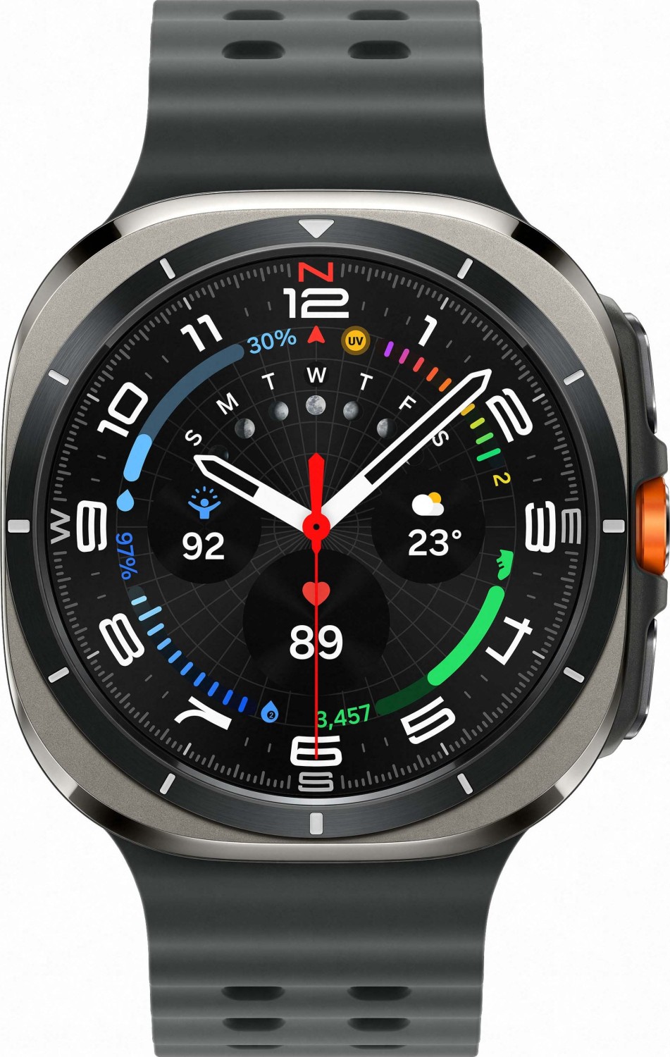Zeit, Stoppuhr, Countdown, Schrittzähler, Schwimmzüge, Geschwindigkeit, Distanz, Rundenzähler, Schlafüberwachung, Zyklusüberwachung, Herzfrequenz, Blutsauerstoff, Blutdruck (optisch), Kalorienverbrauch, Hauttemperatur, Höhenmesser, Luftdruck |