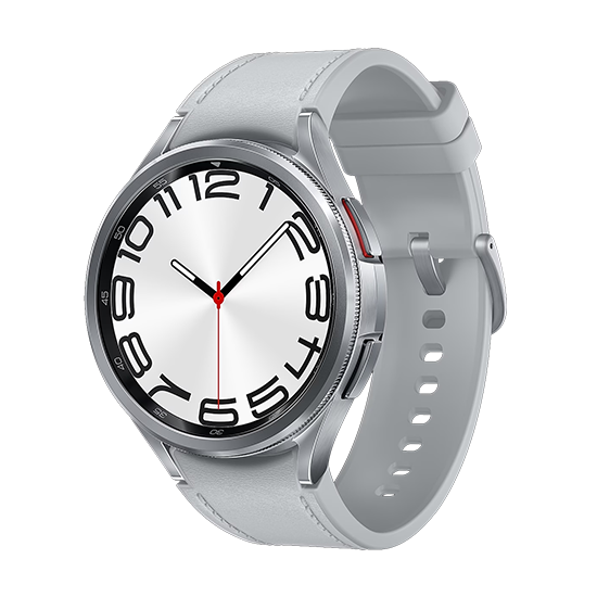 Samsung Galaxy Watch6 Classic - 47 mm - intelligente Uhr mit Band - Hybrid-Eco-Leder - Silber - Bandgröße: M/L - Anzeige 3,73 cm (1.5") - 16GB - NFC, Wi-Fi, Bluetooth - 59 g - Silber - EU-Version (SM-R960NZSAEUE)