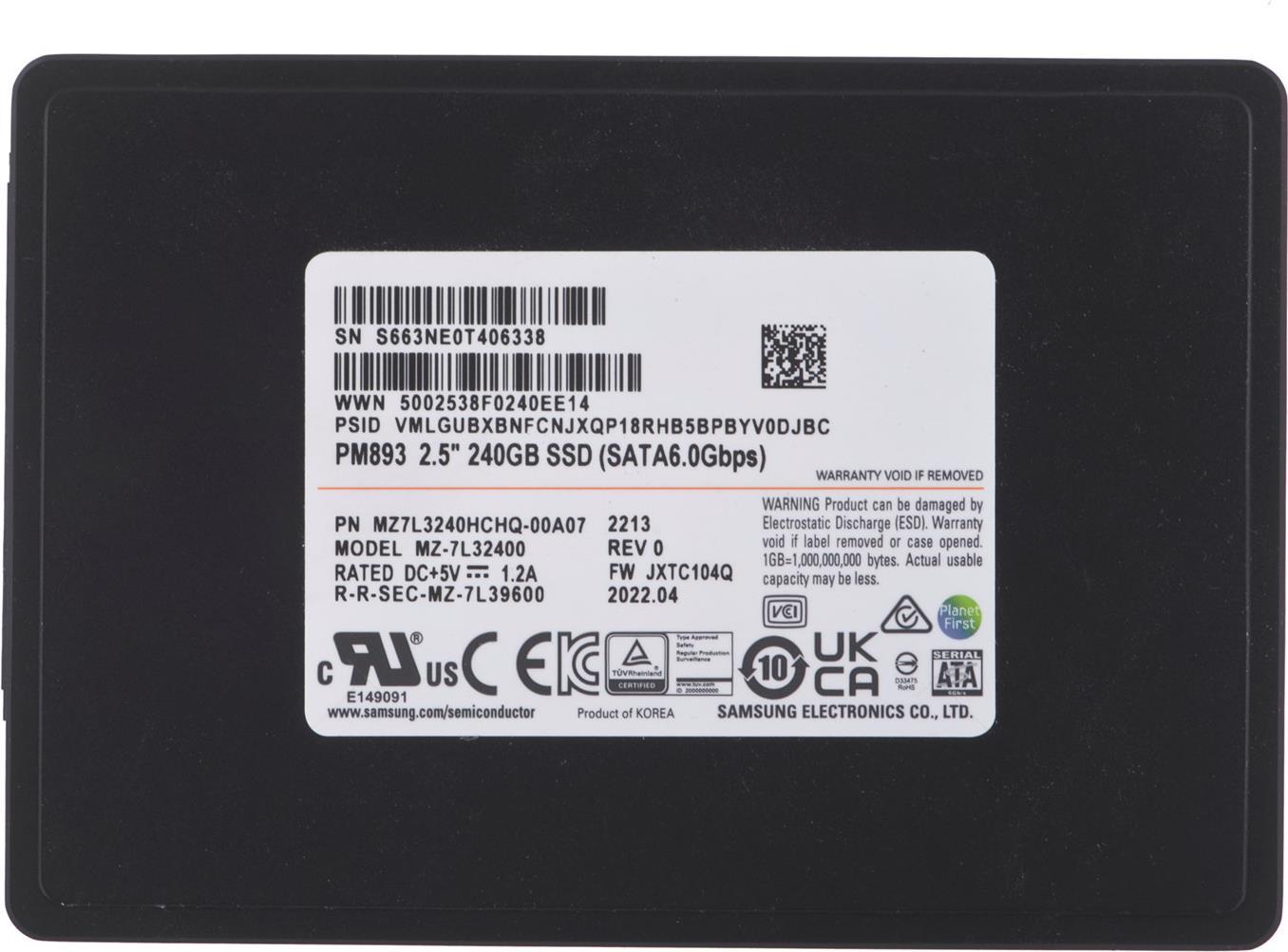 Samsung SSD PM893 240 GB SATA (6Gb/s) 6,40cm (2.5") Data Center SSD OEM