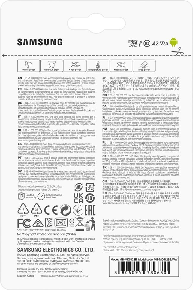 Samsung PRO Plus MB-MD512SB - Flash-Speicherkarte - 512 GB - A2 / Video Class V30 / UHS-I U3 / Class10 - microSDXC UHS-I - Blau