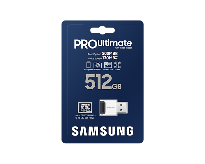 Samsung PRO Ultimate MB-MY512SB - Flash-Speicherkarte - 512GB - A2 / Video Class V30 / UHS-I U3 - microSDXC UHS-I - Blau (MB-MY512SB/WW)