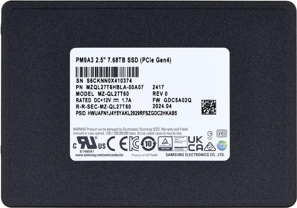 • Samsung SSD PM9A3 7,68 TB (PCIe 4.0 x4) 2.5" Data Center SSD OEM