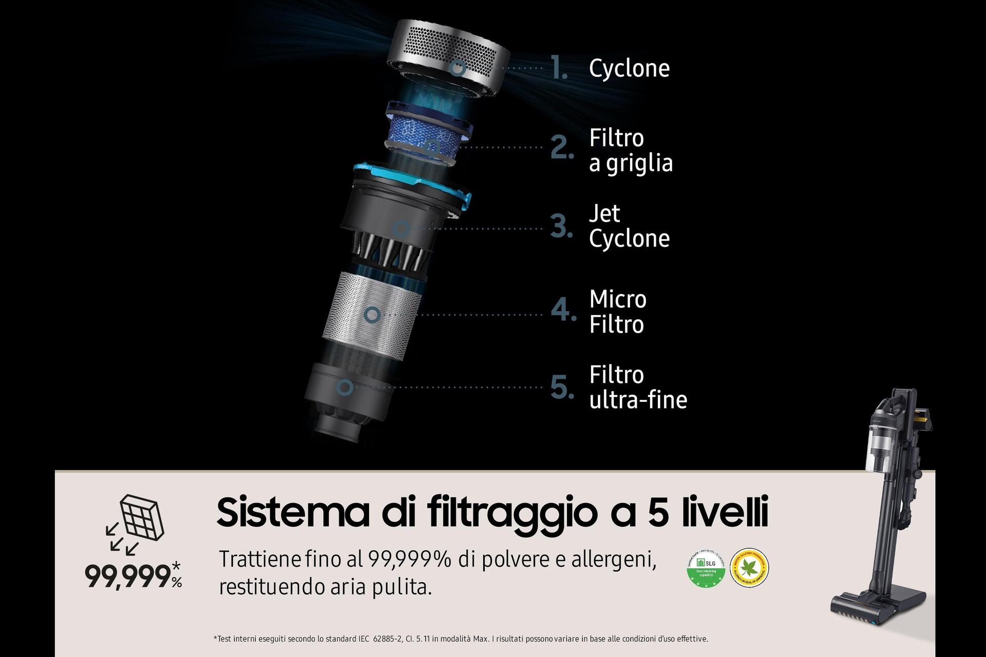 Samsung VS20C9554TK Stabstaubsauger Akku Trocken Zyklonal Beutellos 0,8 l 580 W Schwarz (VS20C9554TK/WA)