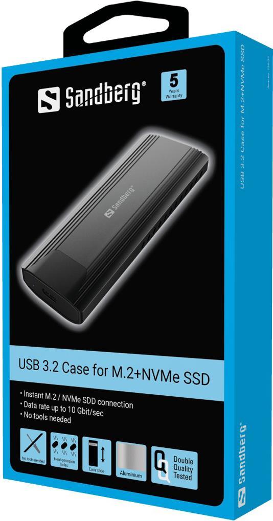 | Produktbeschreibung | Sandberg - Speichergehäuse - M.2 NVMe Card - USB 3.2 (Gen 2) |