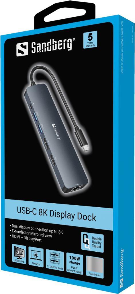 | Produktbeschreibung | Sandberg - Dockingstation - USB-C - HDMI, DP - 100Mb LAN |