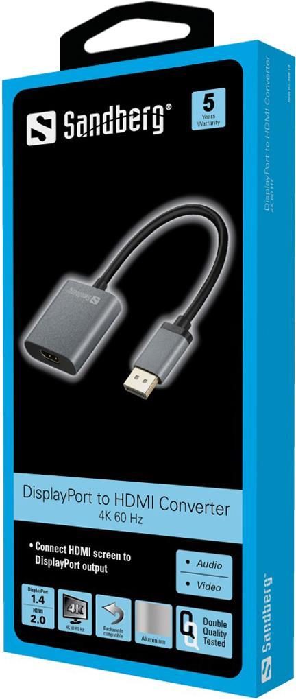 Sandberg - Videoanschluß - DisplayPort / HDMI - DisplayPort (M) bis HDMI (W) - 20cm - 4K Unterstützung (509-19)