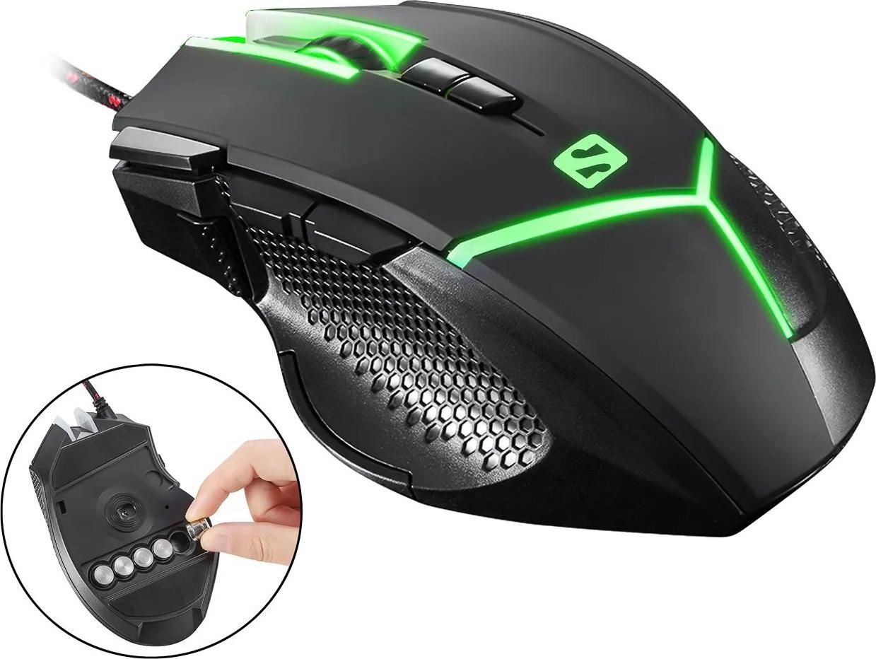 Mit der Sandberg Destroyer FlexWeight Mouse können Sie selbst entscheiden, wie viel Ihre Maus wiegen soll. Die Geschwindigkeit der Mausbewegung ist mit ausschlaggebend für Ihre Spielrekorde. Das Gewicht der Maus spielt dabei eine wichtige Rolle. Diese Maus enthält fünf kleine Gewichte, die Sie einfach entfernen oder wieder einsetzen können. Dank des sicheren Halts liegt die Maus bei langen Spiel-Sessions bequem in der Hand. Die Farben der LED-Leuchten können einfach über eine Taste an der Maus geändert werden.
