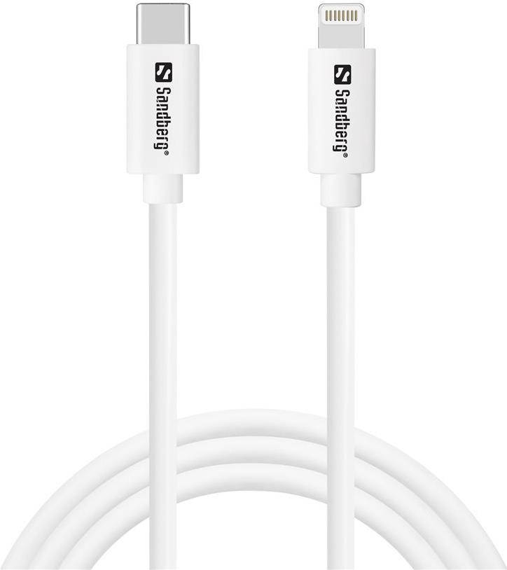 Sandberg - Lightning-Kabel - Lightning männlich zu 24 pin USB-C männlich - 1,0m - weiß - unterstützt Stromversorgung (136-58)
